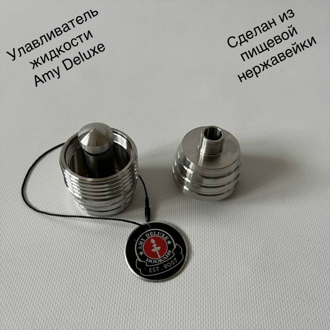 2. Улавливатель жидкости для кальяна Amy Deluxe SS сделан из пищевой нержавеющей стали. Так же играет роль охлаждения потому что очень тяжёлый. Теперь Ваша шахта всегда чистая. Есть любители кальяна которые предпочитают курить без улавливателя. У Вас всегда есть возможность снять его.