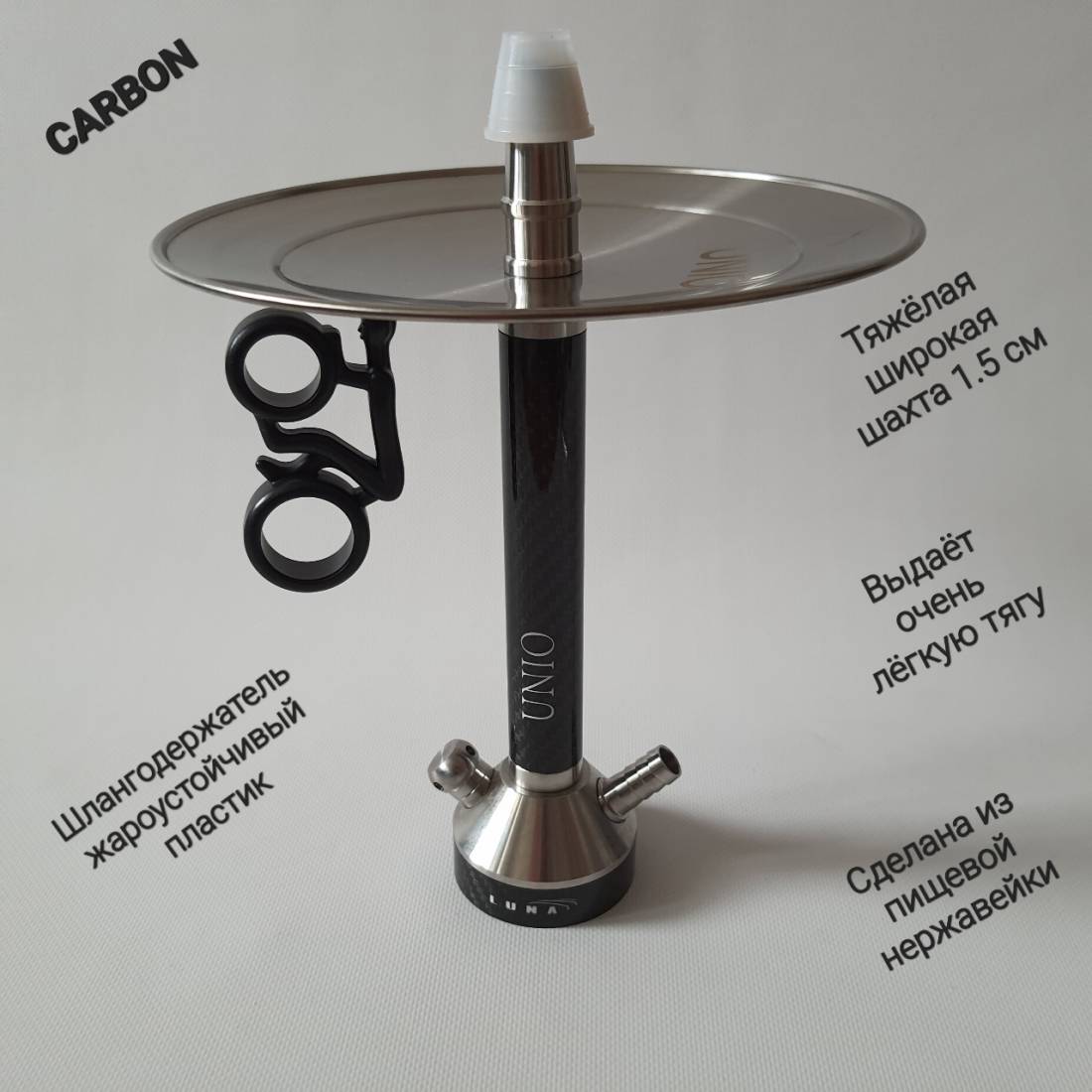 1. Шахта для кальяна у представленной модели сделана из пищевой нержавеющей, стали. Пожалуй это главный элемент, и производитель сделал все самое лучшее. И правильный внутренний диаметр, учитывая высоту кальяна, современный дизайн, высочайшее качество сборки. Шахта покрыта углеродным волокном " CARBON " , очень прочный и качественный материал, который не боится перепадов температуры, ни влаги ни пыли. Абсолютно все металлические элементы кальяна тоже сделаны из пищевой нержавейки, что делает эту модель ПРЕМИУМ.
