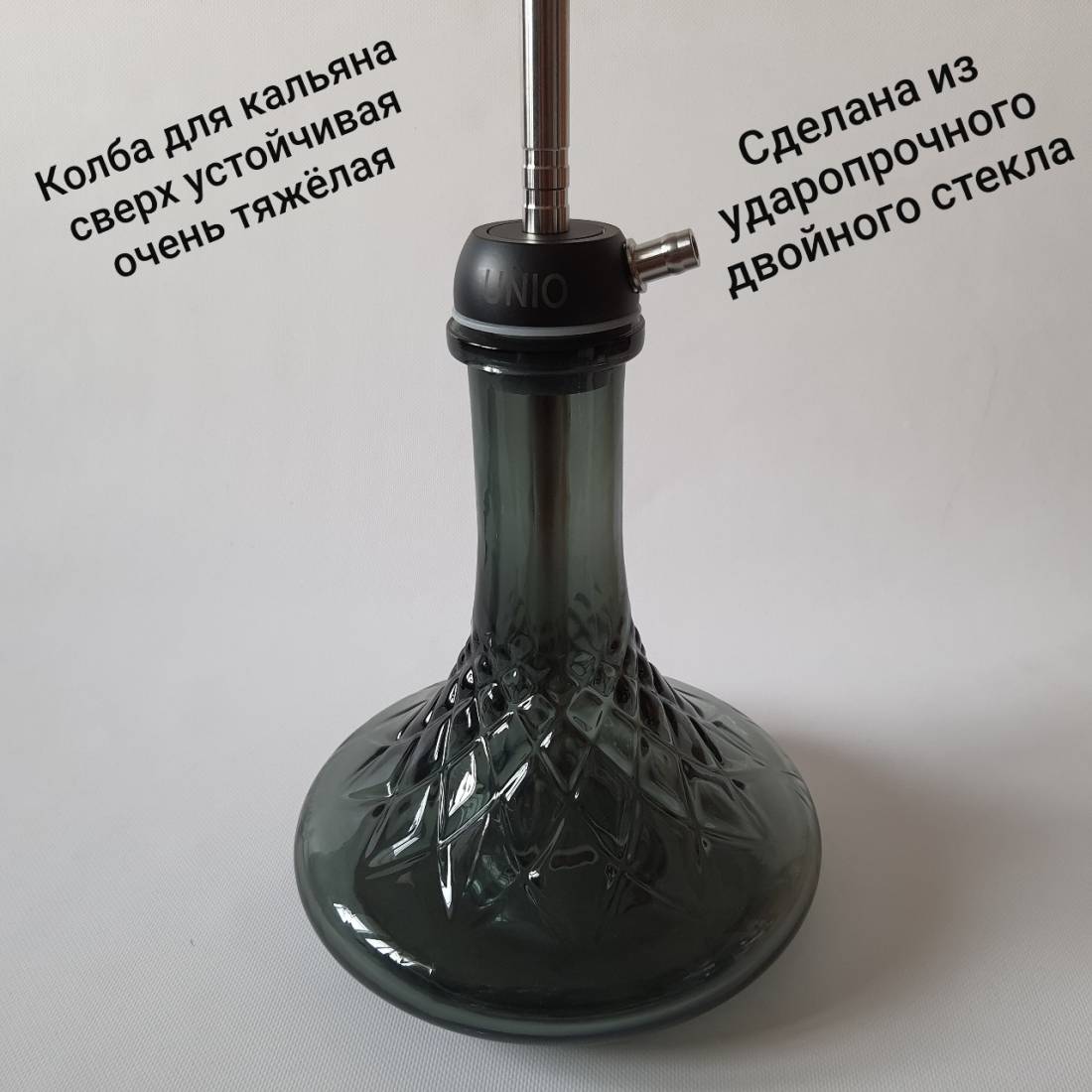 2. Колба для кальяна сделана из двойного ударопрочного стекла. Очень тяжёлая и сверх устойчивая. Колба на силиконовом уплотнителе. Очень легко подбирать другую колбу, если Вы вдруг разбили Свою.