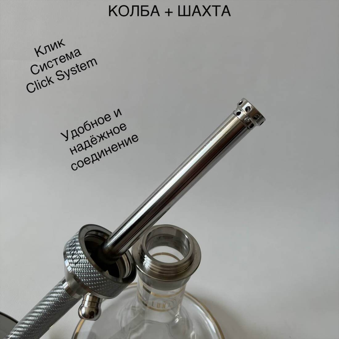 4. Шахта для кальяна сделана из пищевой нержавеющей стали, покрыта углеродным волокном. Имеет строгий классический дизайн, который однозначно привлекает внимание и располагает к покупке.  Соединяется с колбой Клик системой.
