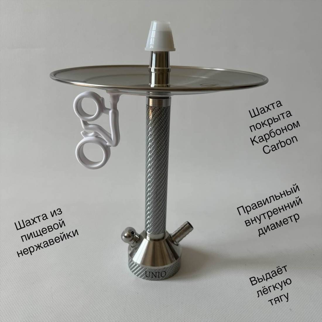 1. Уникальный дизайн кальяна, который сделан полностью из пищевой нержавеющей стали, у которого шахта покрыта углеродным волокном  CARBON  сразу же привлекает внимание и однозначно ставит представленную модель в разряд ПРЕМИУМ.