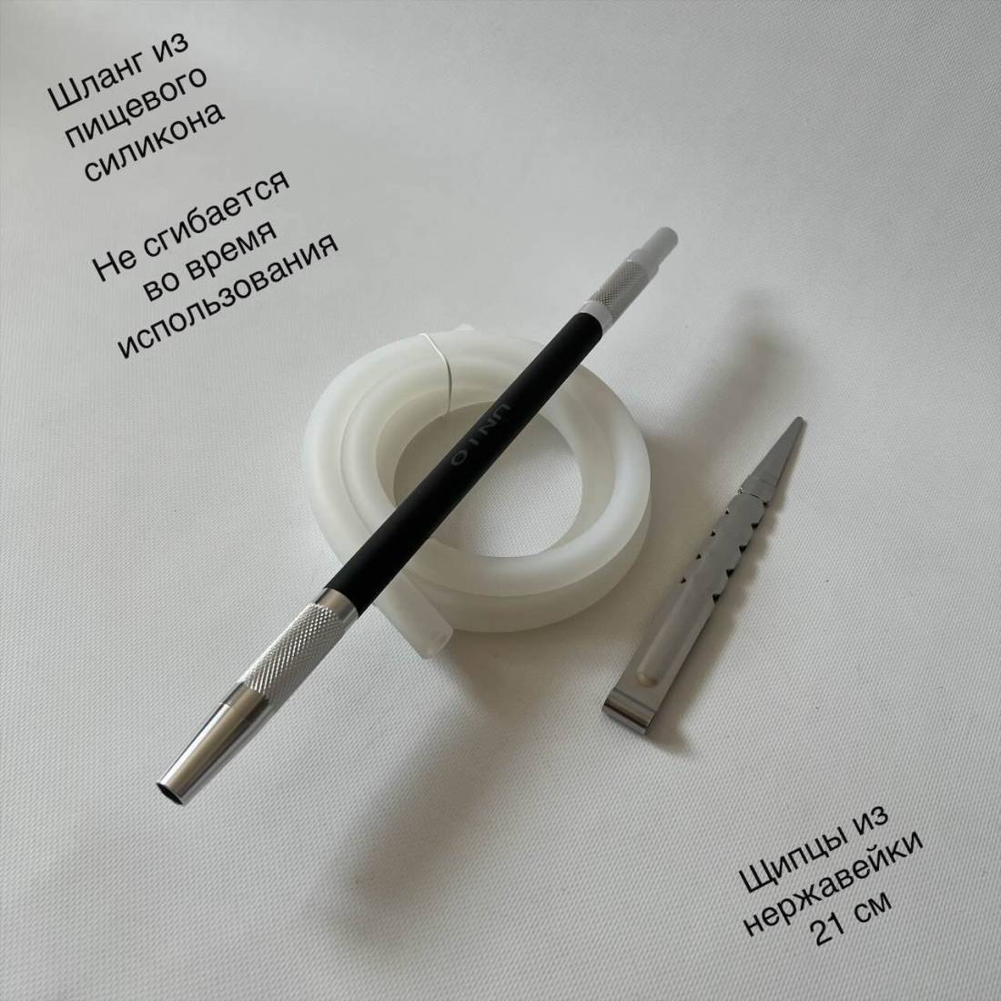 5. Шланг для кальяна у представленной модели сделан из пищевого силикона. Имеет правильный внутренний диаметр что делает очень лёгкую тягу. Основное преимущество у шланга заключается в том, что при использовании он абсолютно не сгибается, хотя очень эластичный.