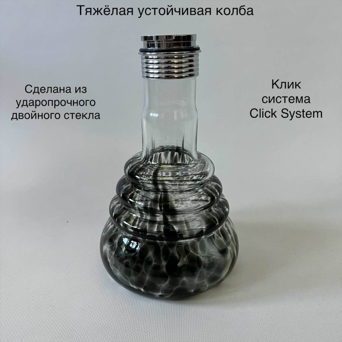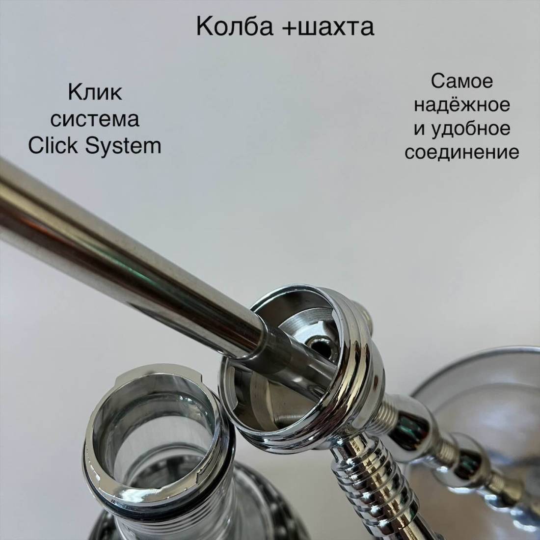 3. Клик система Click System соединяет колбу с шахтой. Очень удобное а самое главное качественное соединение, которое сильно полюбили в кальянных заведениях, потому что за пару секунд можно отделить шахту от колбы.