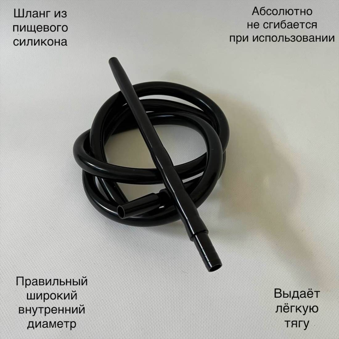 5. Шланг для кальяна сделан из пищевого силикона. Он абсолютно не сгибается при использовании но в тоже время гибкий. Ему не страшны никакие перепады температуры, не боится повышенной влажности. В комплекте идёт мундштук и конектор который соединяет шланг с шахтой. Имеет правильный внутренний диаметр, что в целом выдает очень лёгкую и приятную тягу.