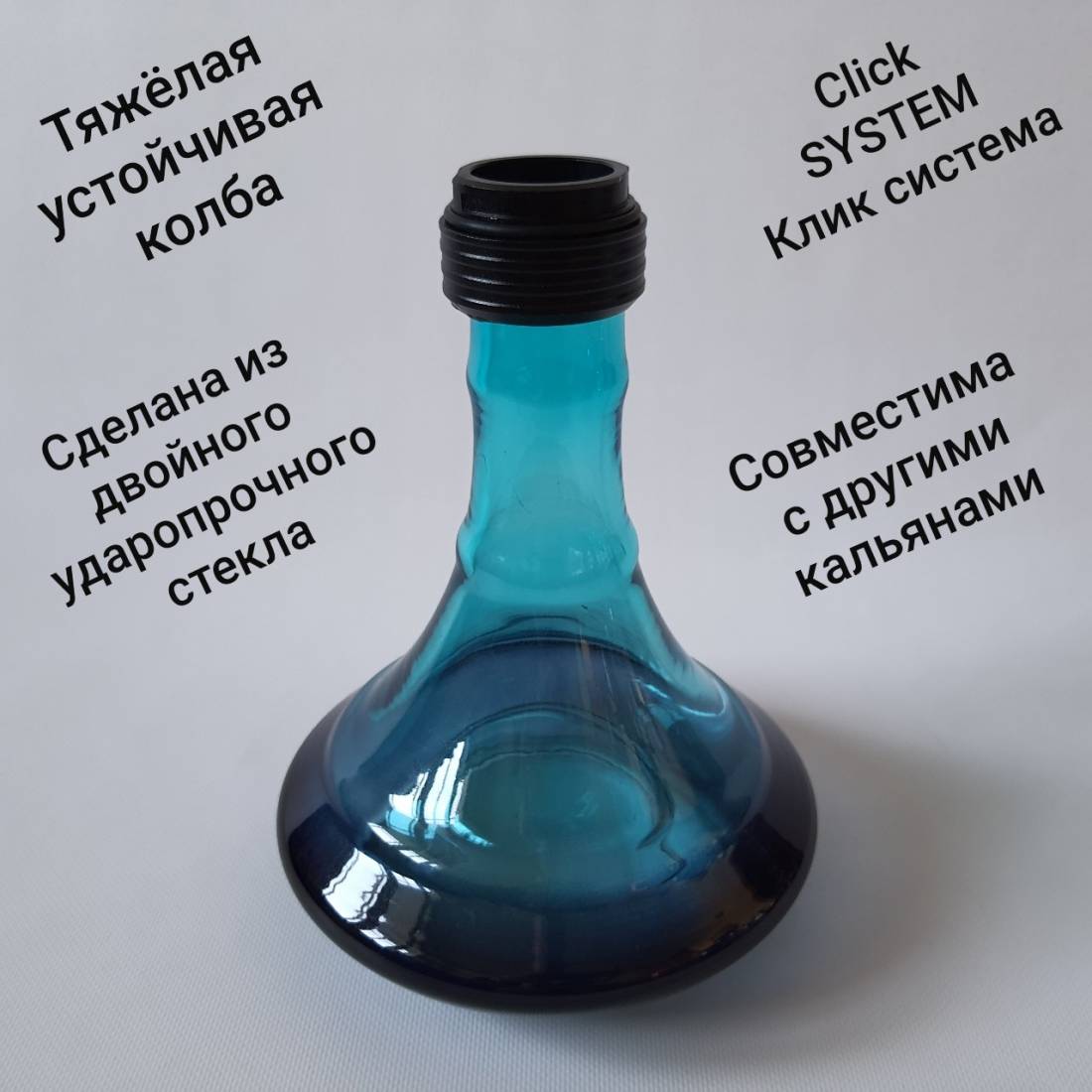 1. Колба для кальяна Amy Deluxe 3D одна из самых плотных колб для кальяна. Сделана из двойного ударопрочного стекла. Очень устойчивая и тяжёлая. Click SYSTEM Клик система соединяет колбу с шахтой. При соединении не прикладывайте большие усилия. Имеет приятный цвет но в то же время прозрачная.