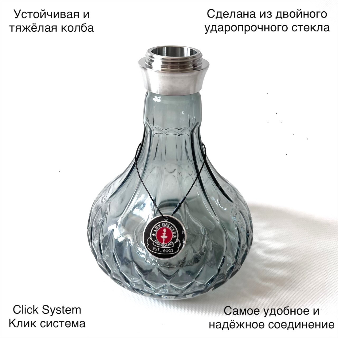 3. Тяжёлая и сверхпрочная колба сделана из двойного ударопрочного стекла. Контролировать количество жидкости не составляет проблем, потому что не смотря на темный оттенок, на самом деле она прозрачная. Соединяется с шахтой клик системой.