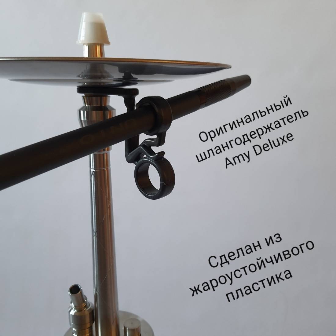 4. Шлангодержатель для кальяна Unio 001.01 идет в комплекте. Очень полезный и нужный аксессуар, который давно оценили все любители кальянного мира. Всем известна ситуация, когда шланг просто некуда положить. Шлангодержатель без проблем решит эту проблему.