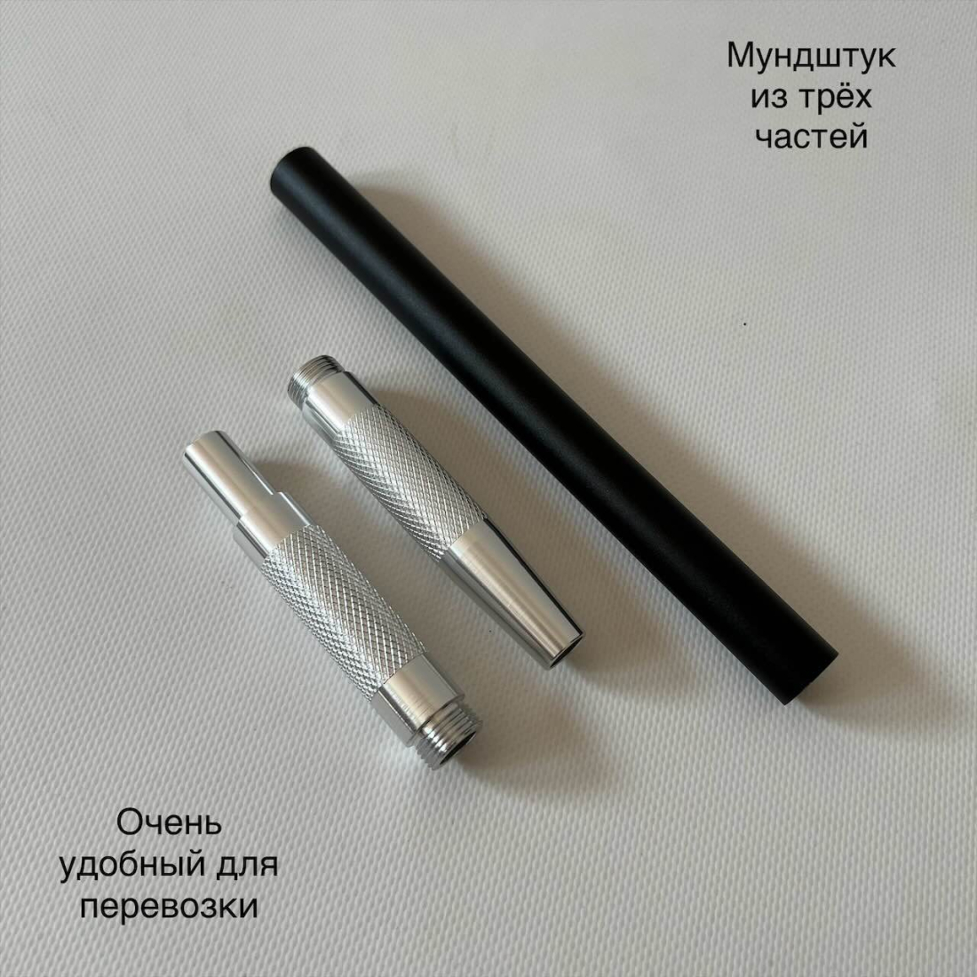 6. Мундштук сделан из анодированного алюминия. Он никогда не поржавеет и не окисляется. Сделан из трёх элементов, это очень удобно для перевозки и хранения.