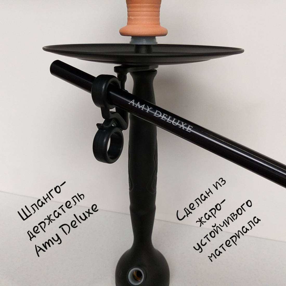 4. Шлангоутримувач для кальяну Amy Deluxe 690 виготовлений із жаростійкого матеріалу та йде у комплекті. Напевно Всім знайома ситуація, коли кальян стоїть на столі або на підлозі, а шланг просто нікуди покласти. Шлангоутримувач без особливих зусиль вирішить цю проблему.